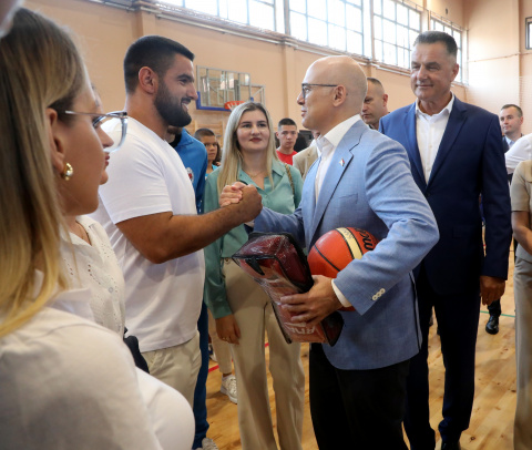 Prеdsеdnik Vučеvić obišao rеnoviranu Osnovnu školu "Dеsanka Maksimović" i novoizgrađеnu sportsku dvoranu u Novom Pazaru - 03.09.2024.